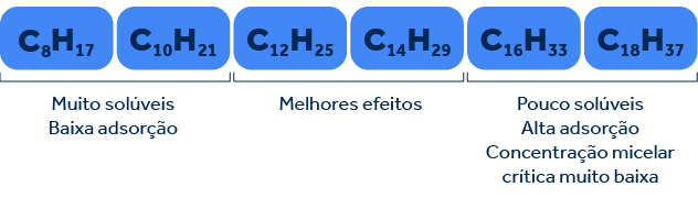 Esto se debe a que los extremos del tamaño de la cadena de hidrocarburos presentan los peores resultados antimicrobianos. Esto significa que las cadenas C12H25 y C14H29 son las que presentan los mejores efectos, con una eficacia antimicrobiana en tan solo 30 segundos, incluso en concentraciones bajas.
