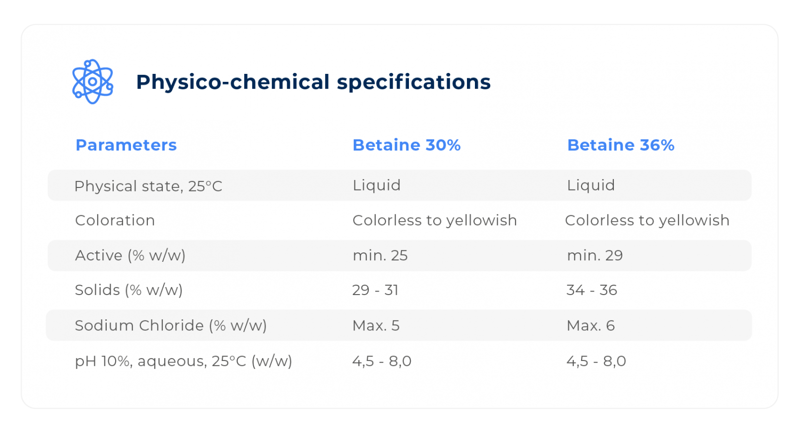 The offer of a product with a lower concentration without proper transparency showed us the need to issue a warning and ensure an honest and safe product, with active ingredients in accordance with the quantity offered. Therefore, Betaine supplied by Macler is available in two versions according to the specifications below: