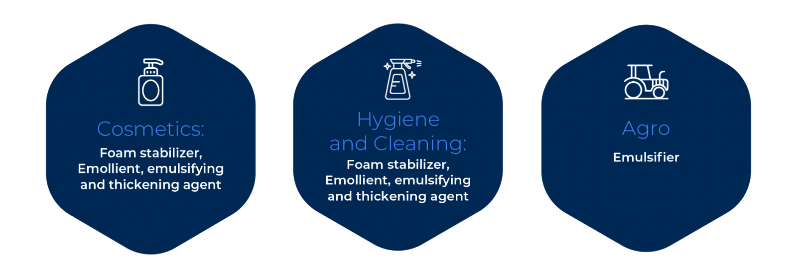The main properties of these surfactants are their solubility, emolliency, foaming power, and wetting ability, thus explaining their widespread use in the cosmetics and cleaning products market.