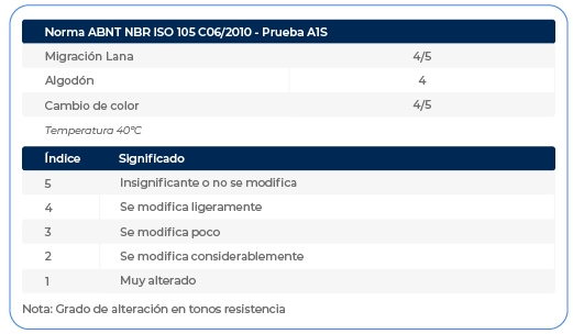 En el área textil, además de diversos resultados positivos por su alto poder humectante en detergentes y prelavado, se observó una acción eficaz en la inhibición de la migración del color y en la dispersión de los colorantes, tal y como se muestra a continuación: