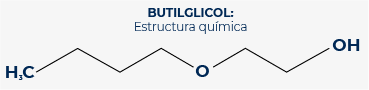 El butilglicol es un éter monobutílico de etilenglicol. Es un líquido incoloro con un olor rancio y dulce, miscible y soluble en agua y alcohol, además de tener un alto poder de solvencia en hidrocarburos de petróleo. Está compuesto por un glicol conectado a cuatro carbonos, como se muestra en la siguiente figura: