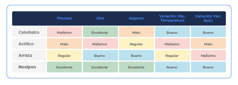 Los cuatro tipos principales de espesantes utilizados por la industria de productos de limpieza son: celulósicos, acrílicos, amida y el Noxipon.